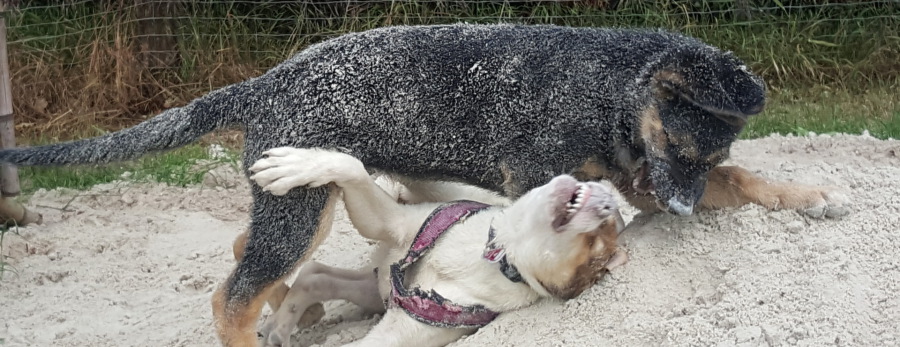 Mino ist ein Hund aus dem Tierschutz. Als wir zu Liane kamen, auf einen großen und gesicherten Platz, mit Hunden seiner Größe und unter Aufsicht, blühte er wieder richtig auf. Er spielt so gerne mit seinen Freunden dort und hat sich auch weiter entwickelt, ist ein wenig mutiger geworden und liebt es, wenn wir auf den Platz fahren. Liane passt immer auf, dass niemand gemobbt wird, erklärt das Verhalten der Hunde und ist immer da, wenn man Fragen hat.